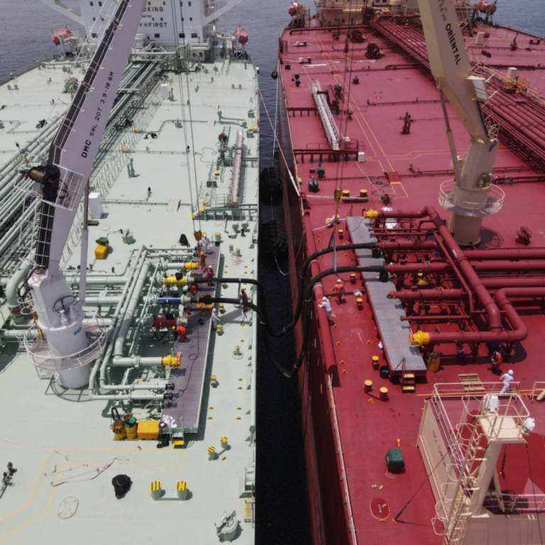 Proporcionamos asistencia para la ejecución de operaciones de transferencia de hidrocarburos buque a buque, lo cual cubre: conexión de equipos propios, certificados y confiables para el abarloamiento de manera segura; suministro de mangueras petroleras para las operaciones de transferencia; custodio de las operaciones a través de un buque de apoyo equipado con el equipo de respuesta ante emergencia ambiental; despliegue de equipos para la contención de derrames, así como actuación en caso de emergencias.