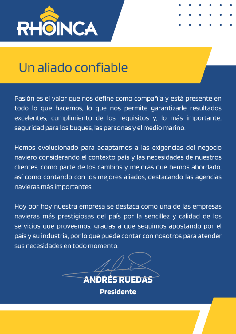Ruedas Hernández y Ortega Inversiones, C.A. (RHOINCA) fue fundada en el año 2004 en Maracaibo, estado Zulia, enfocada en ofrecer soluciones logísticas en construcción y mecánica para la industria energética, pero en los siguientes años, como parte de una respuesta rápida a las tendencias cambiantes y necesidades de potenciales clientes, se reformuló ese enfoque para proveer una línea amplia de servicios para el negocio naviero.